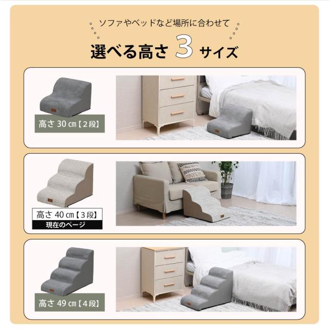 ドッグステップ ペットステップ ペット用ステップ ペット 階段 3段 ペット スロープ ステップ ペット用品 介護 犬 滑り止め 踏み台 室内犬 小型犬 中型犬 大型犬 高齢犬 シニア犬 カバー洗濯可能 ペット用階段