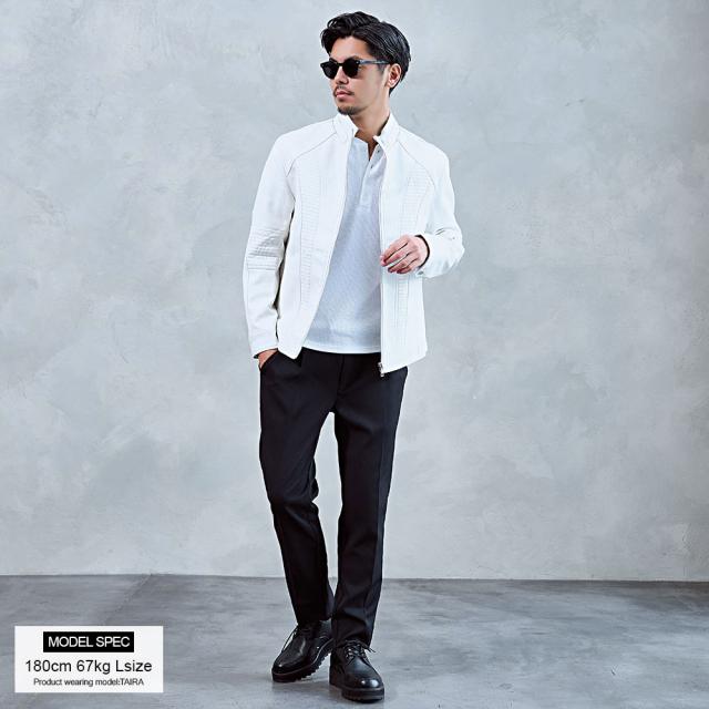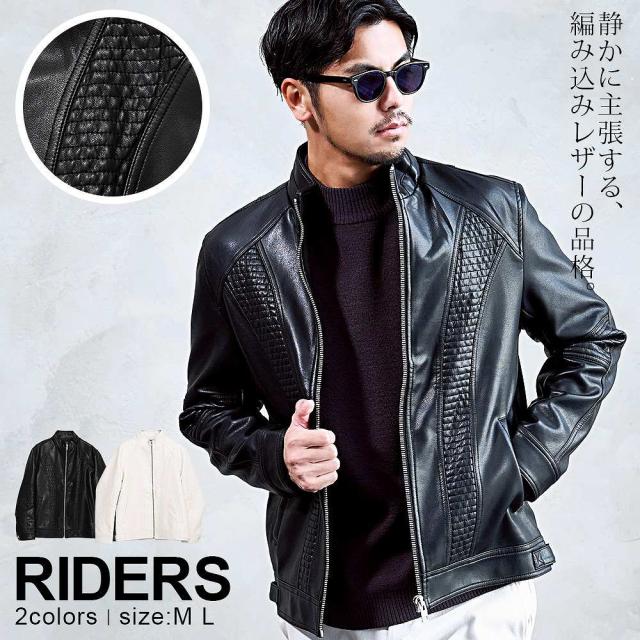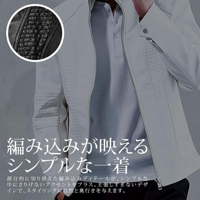 ライダースジャケット メンズ おしゃれ シングルライダース レザージャケット PUレザー フェイクレザー 合成皮革 合皮 編み込み 切り替え ブルゾン 細身 スリム タイト スタイリッシュ ブラック ホワイト 黒 白 無地 M L CavariA キャバリア ブランド シンプル 男性 大人 秋服 冬服 春服 大人 ファッション バイカー カジュアル ストリート ストリート系 ストリートファッション 韓国 韓国系 韓国ファッション 下北沢 下北系 古着 古着系 90s 90年代 2000年代 Y2K 父の日 父の日ギフト 父の日プレゼント 20代 30代 40代 50代 メンズファッション 東京 プレゼント 誕生日 記念日 贈り物 ギフト ジップジャケット モード 都会的 アーバン ミニマル スマートシルエット配送について