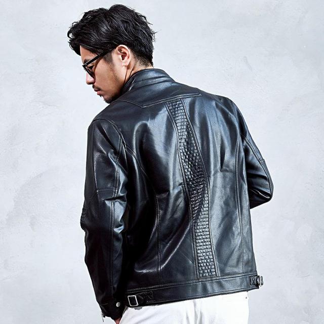 ライダースジャケット メンズ おしゃれ シングルライダース レザージャケット アウター PUレザー フェイクレザー 編み込み ブルゾン 無地 ブランド シンプル CavariA 大人 20代 30代 40代 50代 ちょいワル ユニセックス 男性 男 服 秋 冬 秋冬 ファッション[CARE25-96]