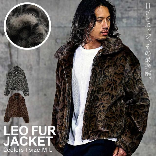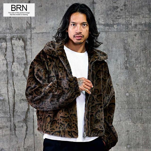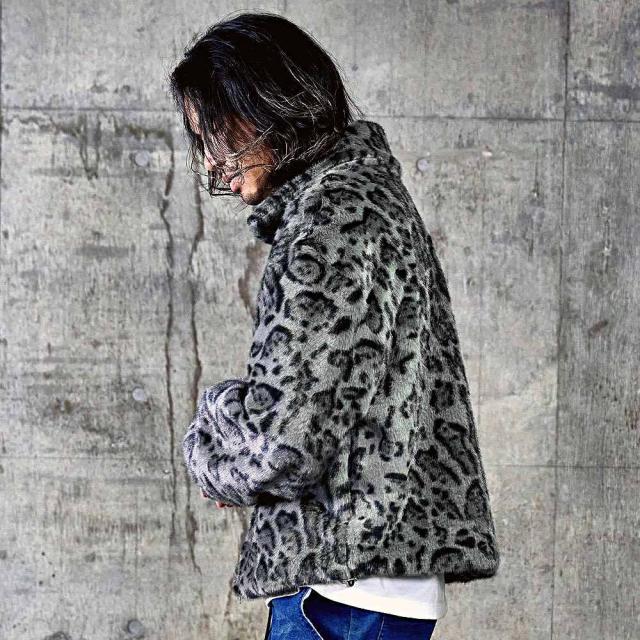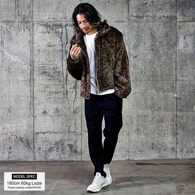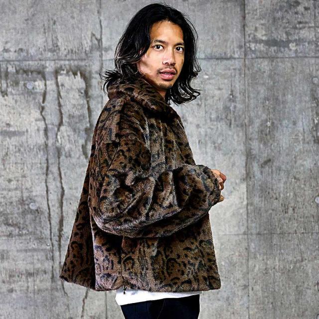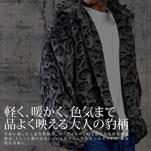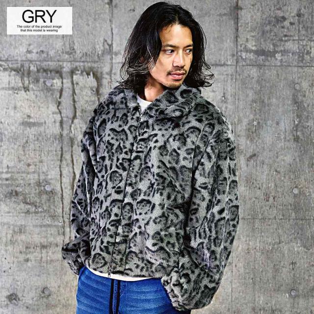 ファージャケット メンズ アウター おしゃれ ブルゾン ファーパーカー ボアジャケット ボアブルゾン ボアパーカー ヒョウ柄 豹柄 レオパード 総柄 ダブルジップ ショート丈 CavariA 大人 20代 30代 40代 50代 ちょいワル ユニセックス 男性 男 服 秋 冬 秋冬[CARE25-92]