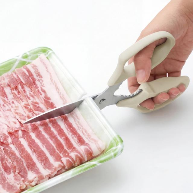 冷凍肉など硬くて滑りやすい食材も簡単に切れるムテキバサミ。