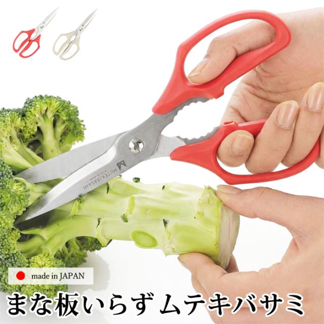 送料無料 ムテキバサミ キッチンバサミ 調理器具 はさみ ステンレス 食洗器対応 ギザ刃 分解 丸洗い 軽量 レー レッド[17455]
