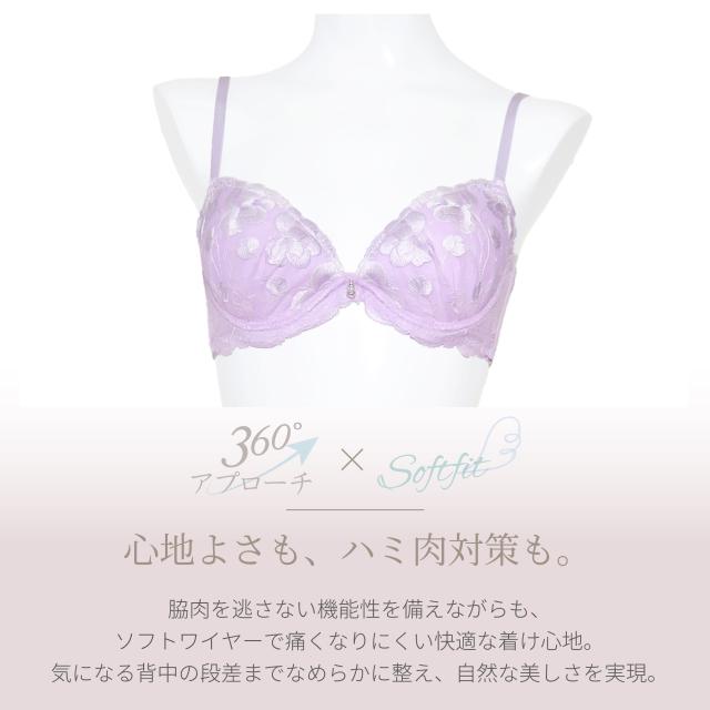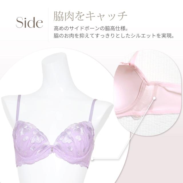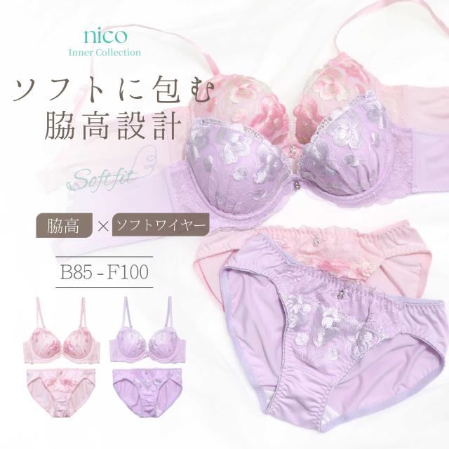 商品名(商品番号):脇高 ソフトワイヤー ブラセット B85-F100 大きいサイズ 艶刺繍 ピンク パープル (j-7049-ef)