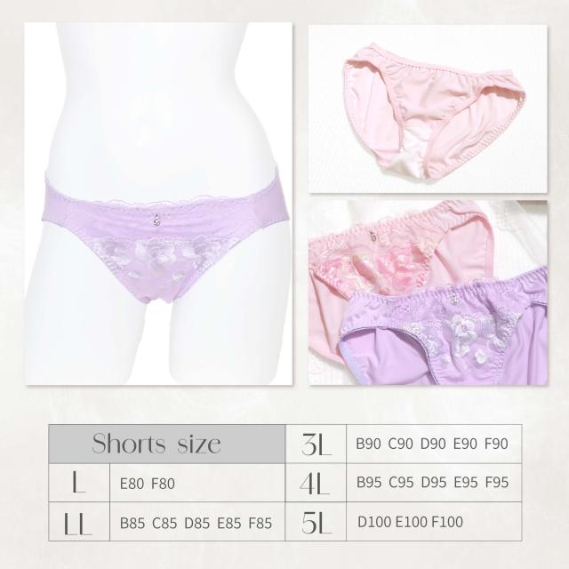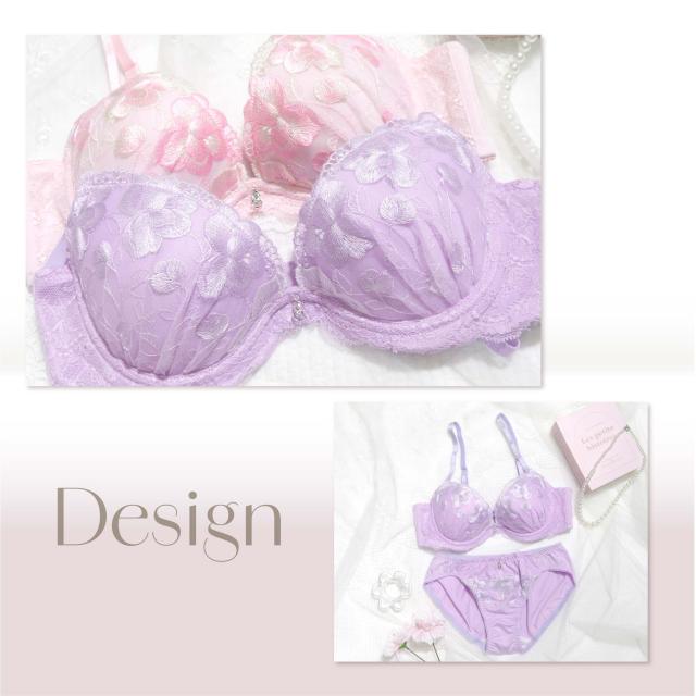 脇高 ソフトワイヤー ブラセット B85-F100 大きいサイズ 艶刺繍 ピンク パープル(J-7049-ef)[メール便不可]【ブラジャー ショーツ アンダー100 下着 レディース Fカップ グラマー 上下セット】