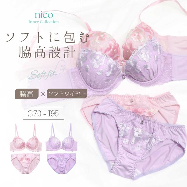 商品名(商品番号):脇高ソフトワイヤー ブラセット G70-I95 大きいサイズ 艶刺繍 ピンク パープル (j-7049-ef2)