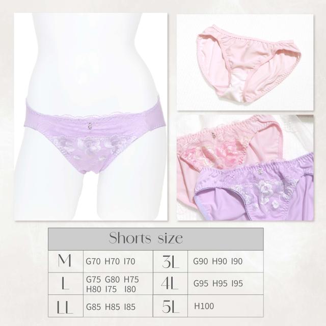 脇高ソフトワイヤー ブラセット G70-I95 大きいサイズ 艶刺繍 ピンク パープル (J-7049-ef2)[メール便不可]【ブラジャー ショーツ Gカップ Hカップ Iカップ 下着 レディース グラマー 上下セット】