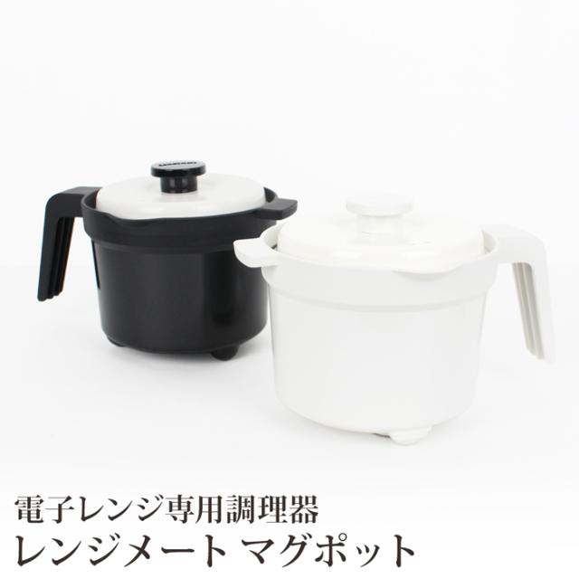 送料無料 マグポット レンジメート 調理器具 キッチン用品 鍋 電子レンジ専用調理器 深型 セラミック 保温 食洗器対応 レシピ付き ホワイト ブラック[17461]