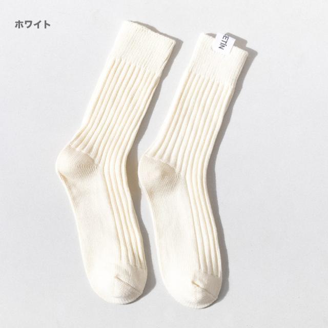 高伸縮なリブ編みでフィット感抜群のクルー丈ソックス。