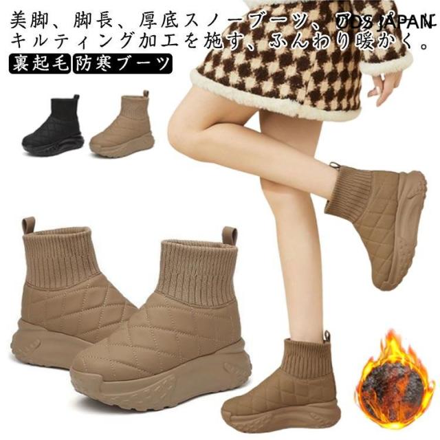 ショートブーツ レディース 裏ボア 秋冬 スノーブーツ 防水 ニットブーツ 防寒ブーツ あったか もこもこ ふわふわ 裏起毛 外反母趾 幅広 甲高 軽
