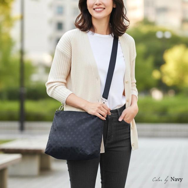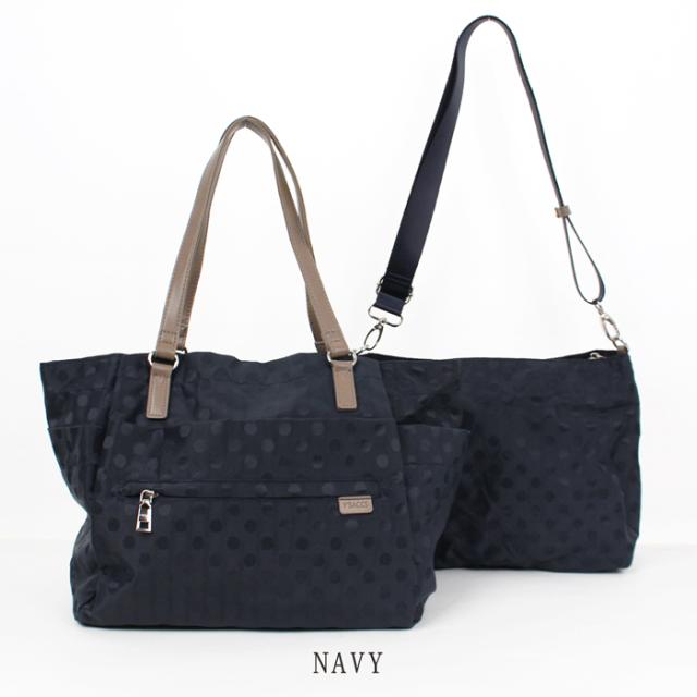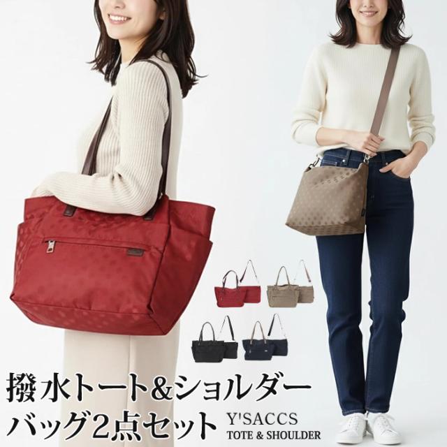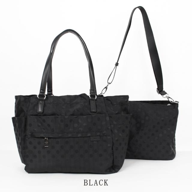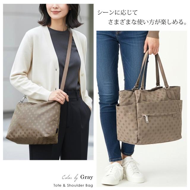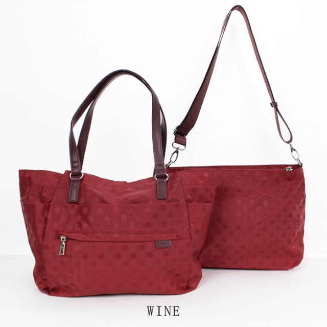 送料無料 バッグ 2点セット レディース イザック 撥水 トートバッグ ショルダーバッグ 鞄 ドット 水玉模様 軽量 グレー ブラック ワイン ネイビー[57225]