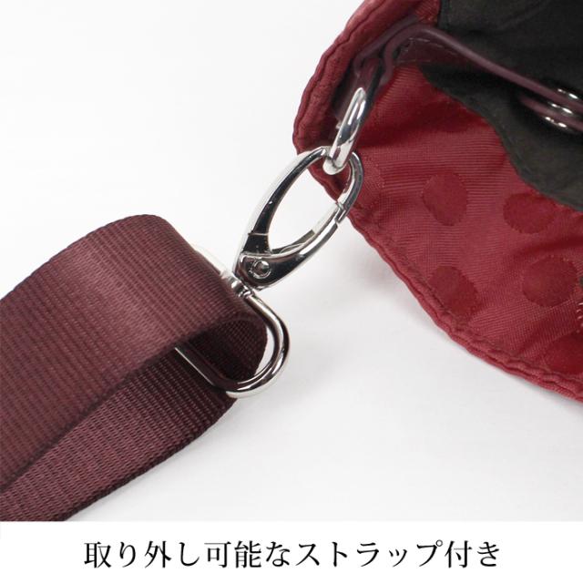 ショルダーバッグのベルトは取り外し可能で手持ちや肩掛けの2WAY仕様。