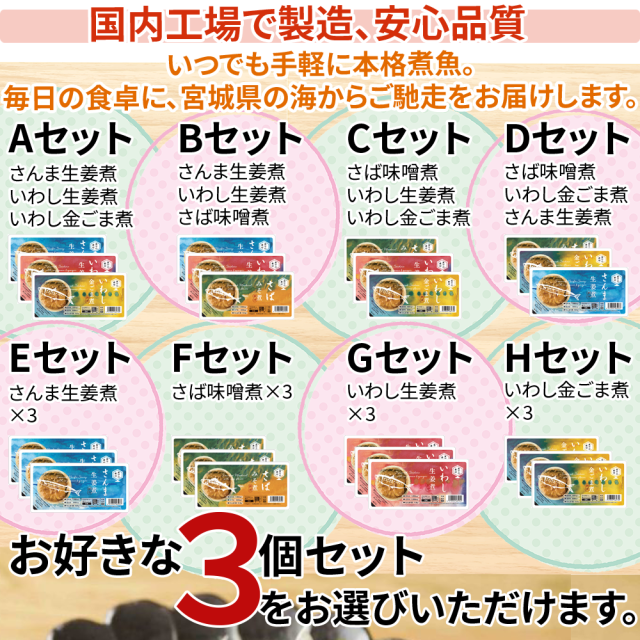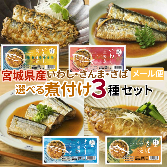国産 さば いわし さんま 煮付 生姜煮 みそ煮 金ごま煮 [選べる煮付4種から3パック鮮冷 BL] 国内製造 時短商品 長期保存 送料無料 メール便 NP