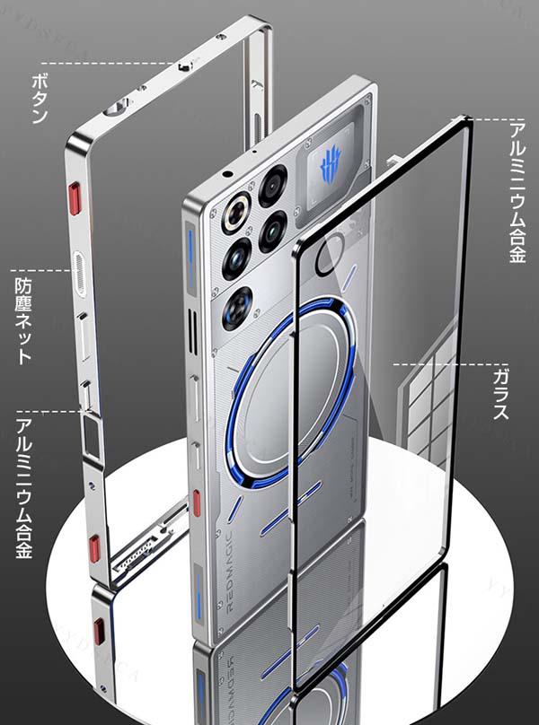 ヌビア Nubia REDMAGIC 11 Pro/11 Pro+ ケース カバー CASE アルミバンパーケース 枠 フレーム 軽量 持ちやすい おしゃれ 高級感 金属 レンズ プロテクター 便利 実用 人気 指紋防止 耐衝撃カバー 背面強化ガラス 背面カバー 強化ガラスフィルム おまけ付き