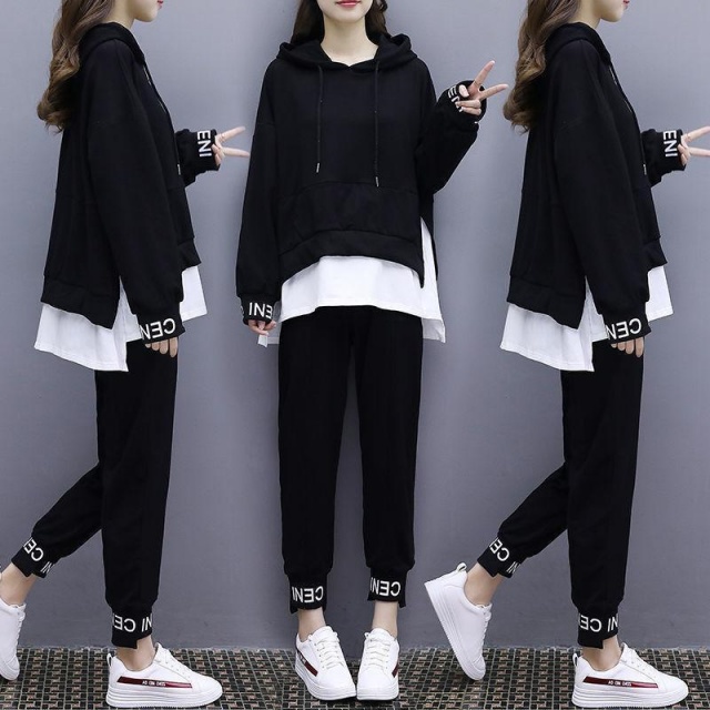 セットアップ ジャージ レディース スウェット 上下セット 長袖 春秋 重ね着風 パーカー 長ズボン スポーツウェア 運動服 着痩せ 大きいサイズ送料無料