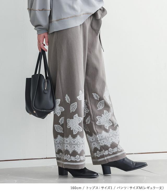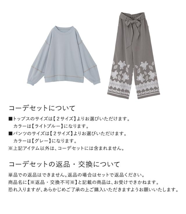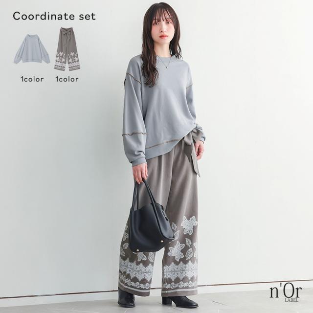 【送料無料】『裏毛メロウランタンスリーブプルオーバー×ウエストリボンレースプリントパンツコーデ2点SET』【メール便不可】【60】[2点コーデセット 2026 レディース スウェット トレーナー 長袖 パンツ ボトムス]