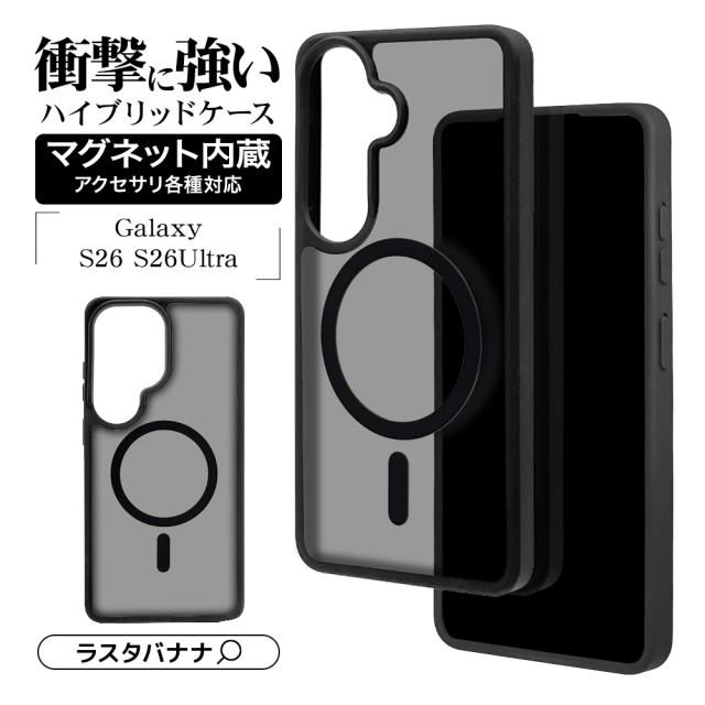Galaxy S26 S26 Ultra ケース カバー ハイブリッド 耐衝撃吸収 マグネット内蔵 MagSafe対応 ワイヤレス充電 TPUバンパーケース マット ブラック×フロストブラック ギャラクシー スマホケース ラスタバナナ