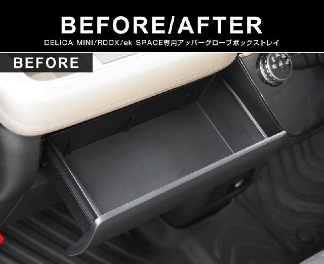 新型デリカミニ・ekスペース・ルークス 後期専用設計の純正グローブボックスに装着するトレイです。