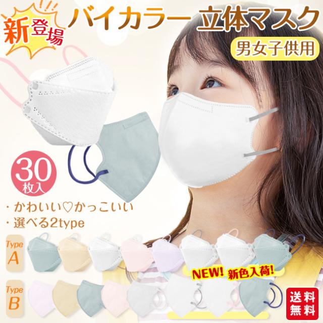 【新作】子供マスク 30枚 3D立体マスク 不織布マスク 息がしやすい バイカラー キッズ 子ども くすみカラー agesugi_sgu