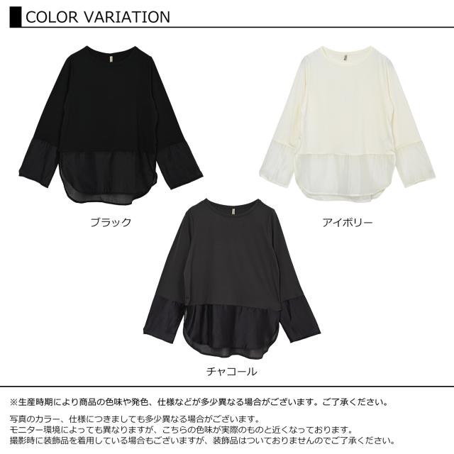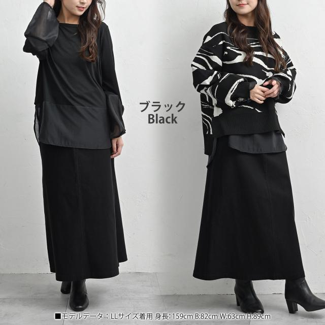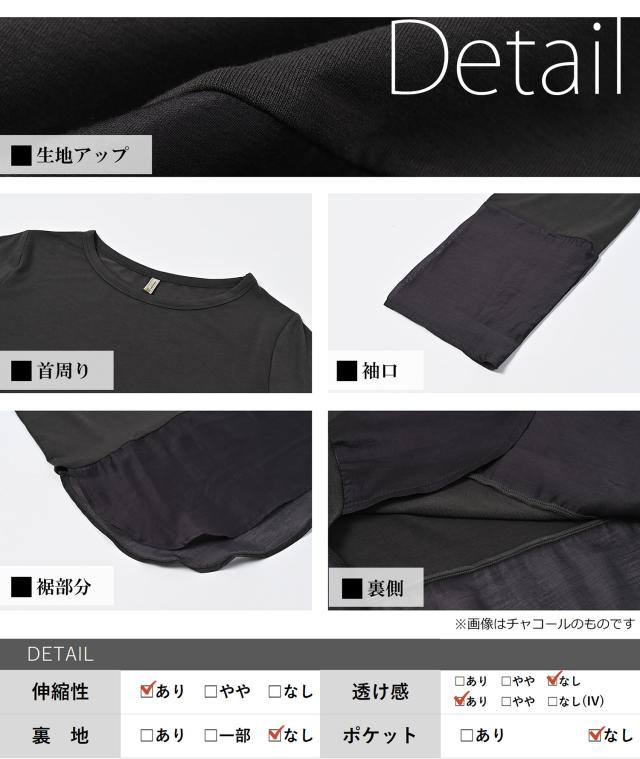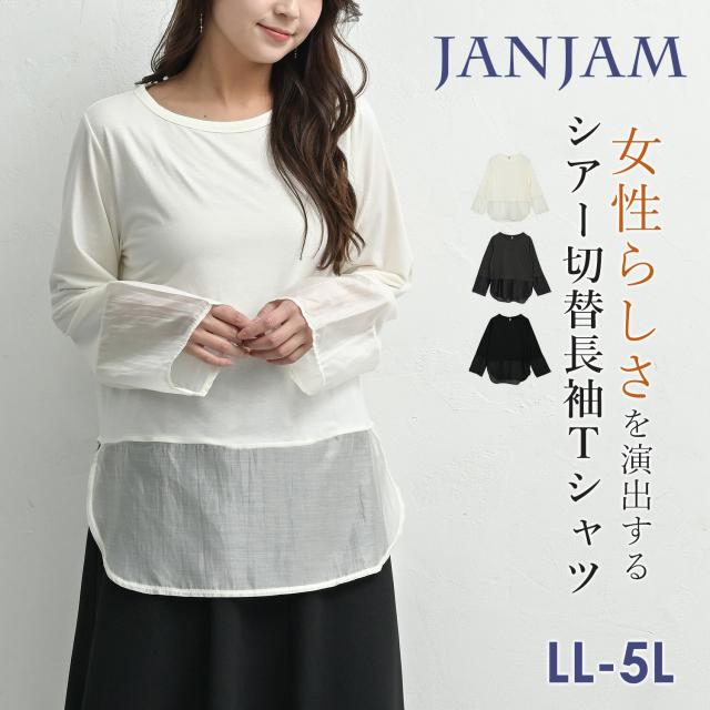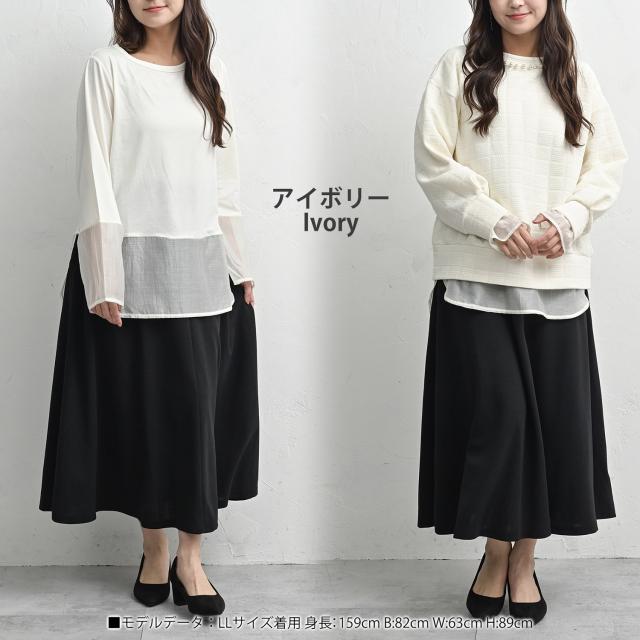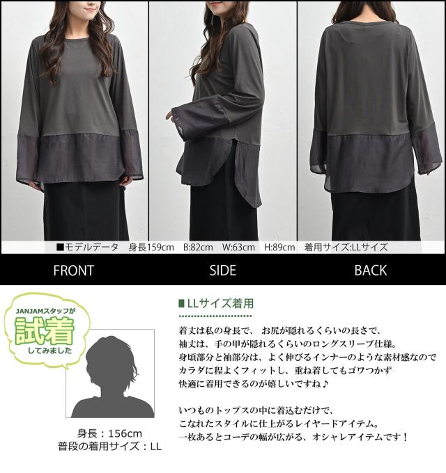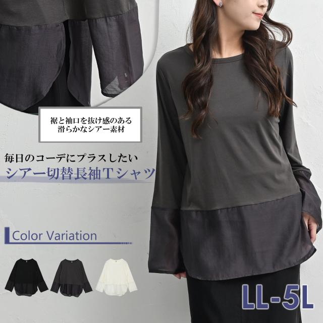 大きいサイズ レディース シアー切替カットソー メール便対応 長袖 異素材切り替え 重ね着用 シアー袖 シアー裾 トップス LL/3L/4L/5L ゆったりサイズ ぽっちゃり女子 プラスサイズ 1月26日10時までP5倍