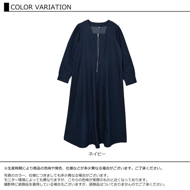 大きいサイズ レディース デニムワンピース 長袖 ロング丈 スクエアネック ZIP Aライン LL/3L/4L/5L ゆったりサイズ ぽっちゃり女子 プラスサイズ 1月26日10時までP5倍