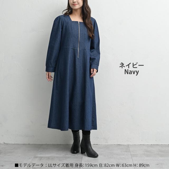 cla-saw-op0665 楽してきれい魅せが叶うデニムワンピース。 大きいサイズ レディース 長袖ワンピース ロング丈ワンピース ロングワンピース デニムワンピース Aラインワンピース ドレスワンピース スクエアネック ZIP ジッパー ファスナー 長袖 ロングスリーブ 切り替え 切替 春服 秋服 冬服 春物 秋物 冬物 春ワンピース 秋ワンピース 冬ワンピース 春ワンピ 秋ワンピ 冬ワンピ 秋冬ワンピース 伸びない 透けない 裏地なし ゆったり 大きめ 大人 カジュアル フェミニン ナチュラル クラシック 上品 レトロ ガーリー ロングデニムワンピース デニムロングドレス 二次会 パーティー デイリーワンピース デニムファッション 大人可愛い きれいめ かわいい かっこいい 着こなし おしゃれ 定番 春コーデ 秋コーデ 冬コーデ ファッション 大きめ 女性 婦人用 ミセス 30代 40代 50代 2026 春新作 春 秋 冬 紺 ネイビー LL 3L 4L 5L 13号 15号 17号 19号 cla-saw-op0665