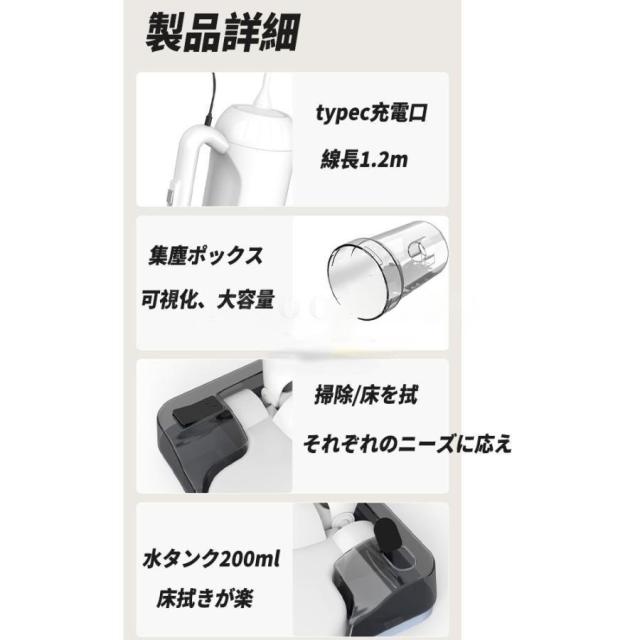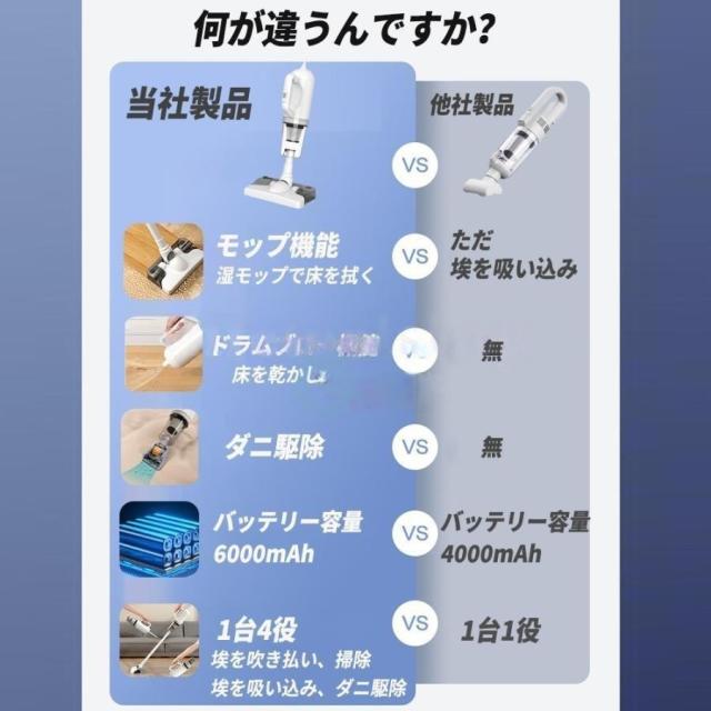 掃除機 コードレス 吸引x水拭き 強力 スティック型 サイクロン 充電式 シロカ 小型 4WAY 6000mAh ハンディ掃除機 1台4役 乾湿両用 軽量化 強力吸引