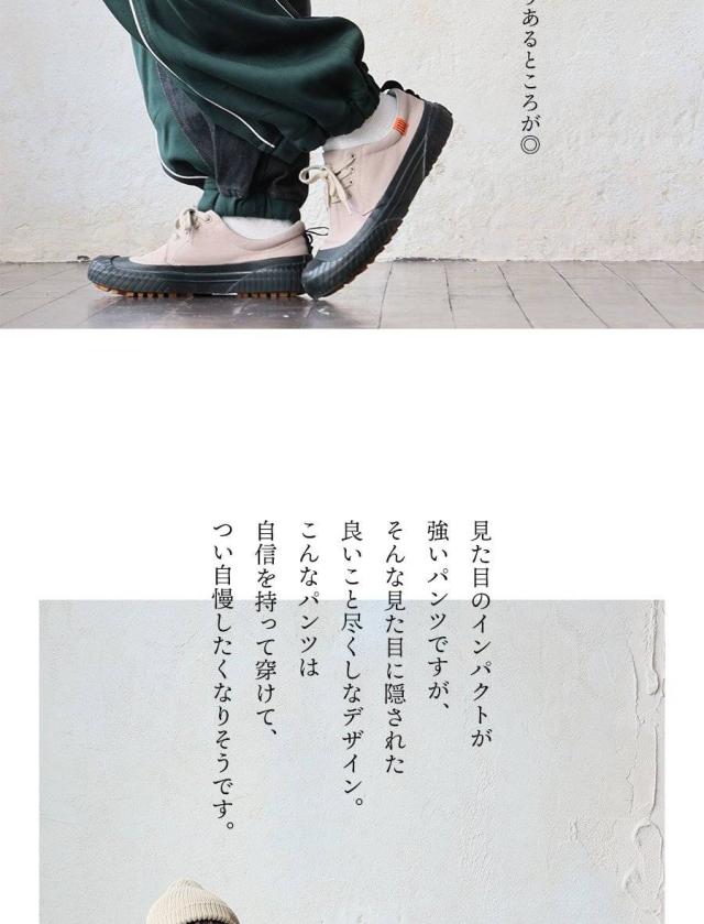 ・ウエストから裾にかけて脚のラインを拾わないボリュームのあるワイドシルエット。