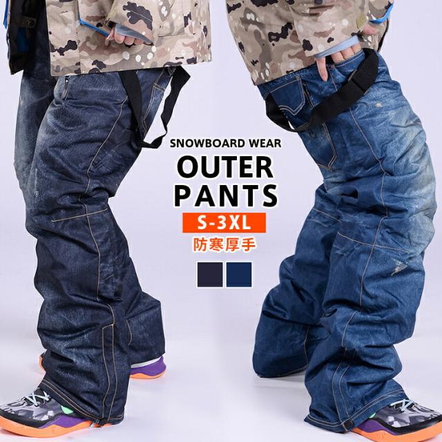 デニム スキーウェア メンズ スノーボードウェア スノーボー パンツ スノボウェア ビブパンツ 防寒 単品 スノーボード スノボ スキー デニムパンツ スノーウェア ボトムス 暖かい