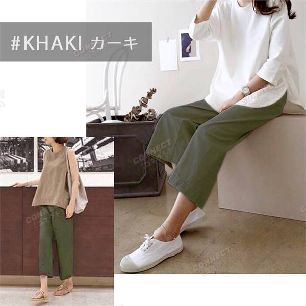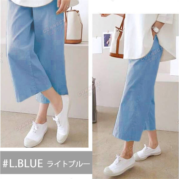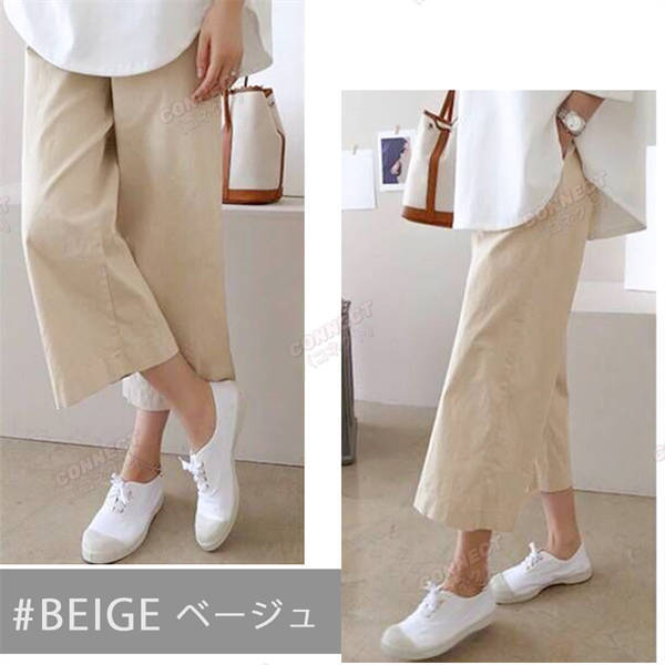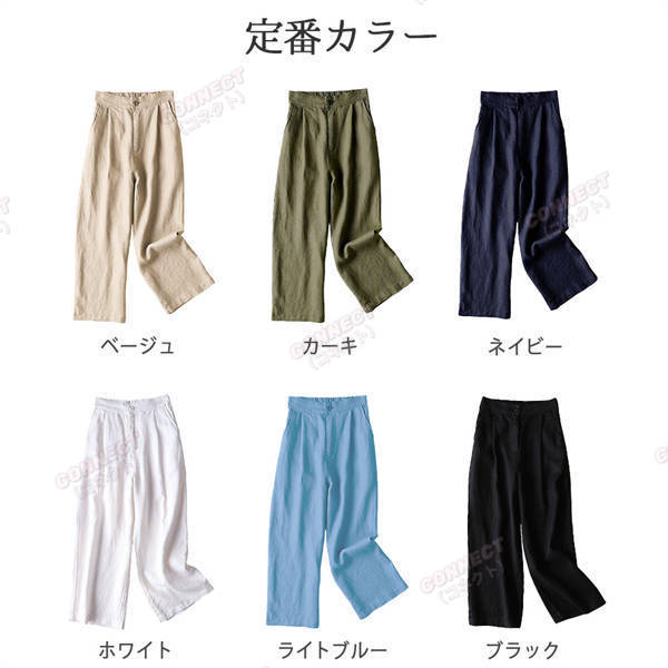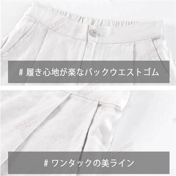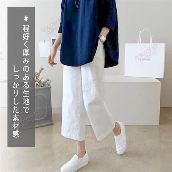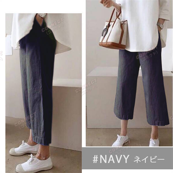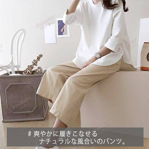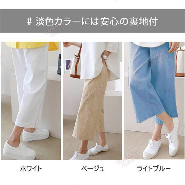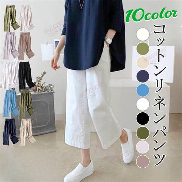 春夏秋 きれいめ セミワイド コットン リネンパンツ 7分 8分 綿麻 リラックス ボトムス オシャレ ゆったり レディース ゴム ホワイト パンツ 裏地 人気 セール ワイドパンツ
