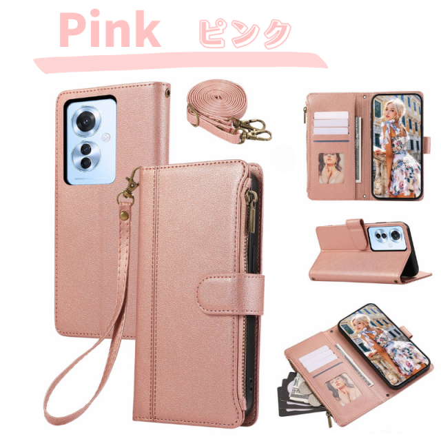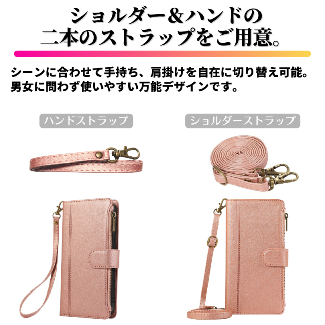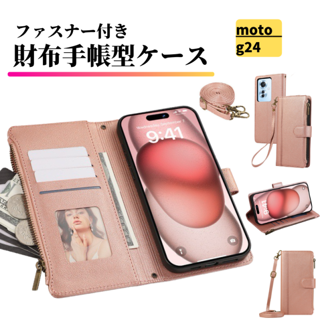 motorola moto g24 ケース 手帳型 レザー お財布 ショルダー カードケース 軽量 カード収納 ストラップ 2種付 耐衝撃 スマホケース カバー 男女兼用 モトローラ モト ピンク