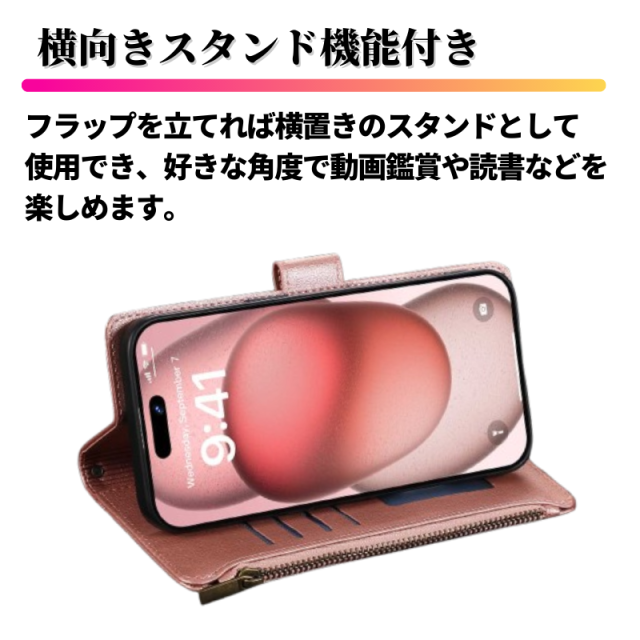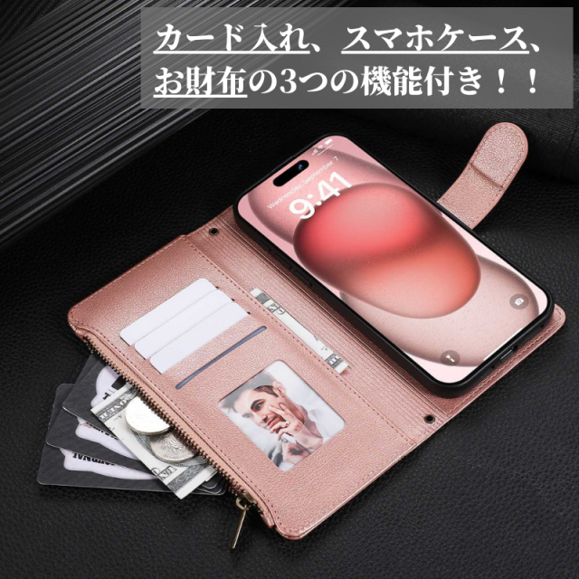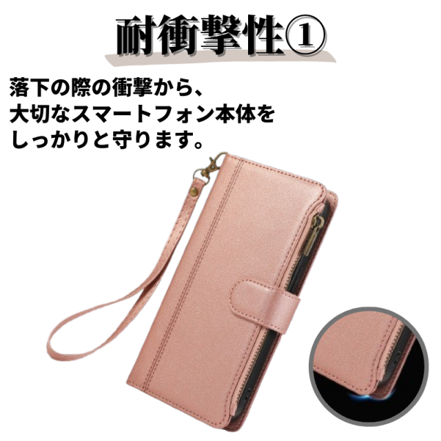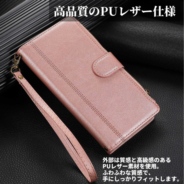 外部は上質なPUレザーを採用し、 ふわふわな質感で、手にしっかりフィット。 内部は柔らかいTPU材質を採用し、本体への衝撃を緩和させる仕様で、キズや衝撃から大切なスマートフォンをしっかり保護