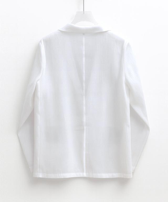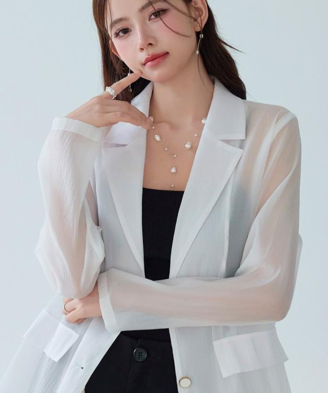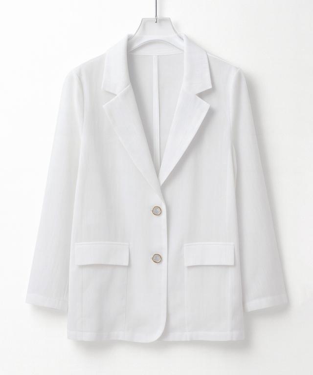 オーガンジーの透け感がポイントのやや長め丈テーラードジャケット。
