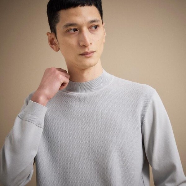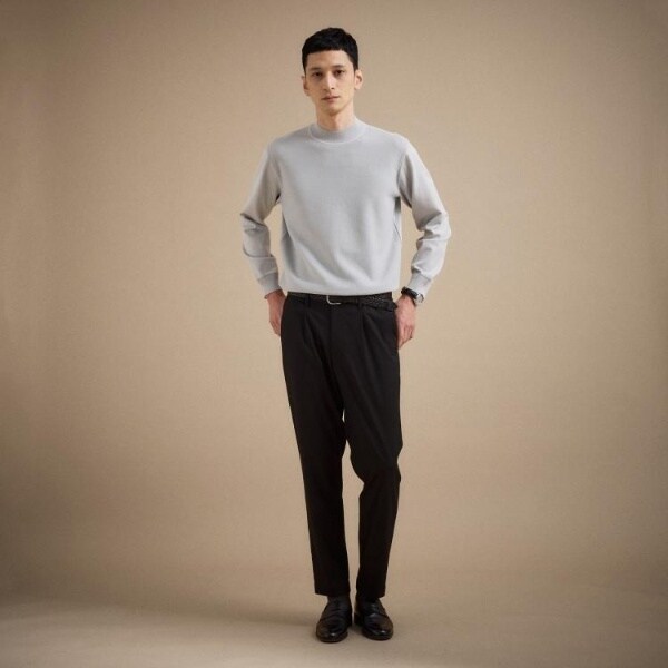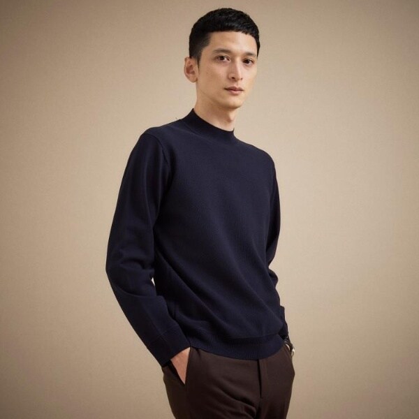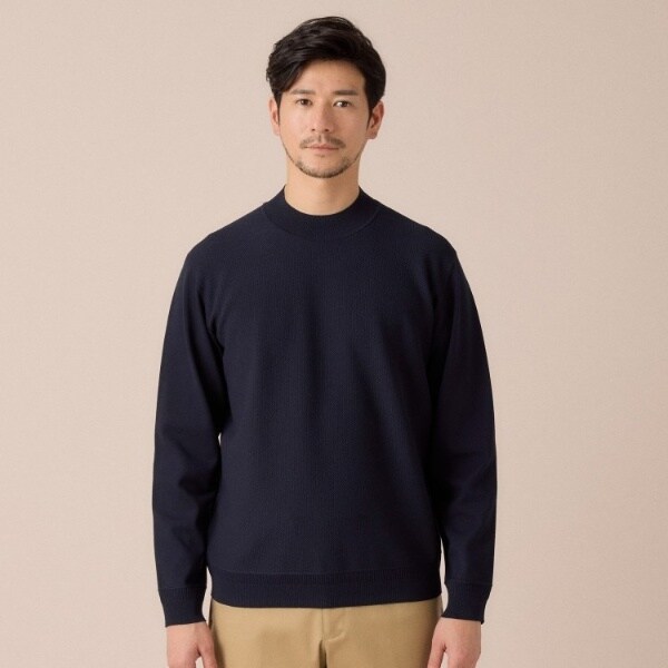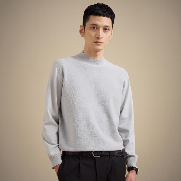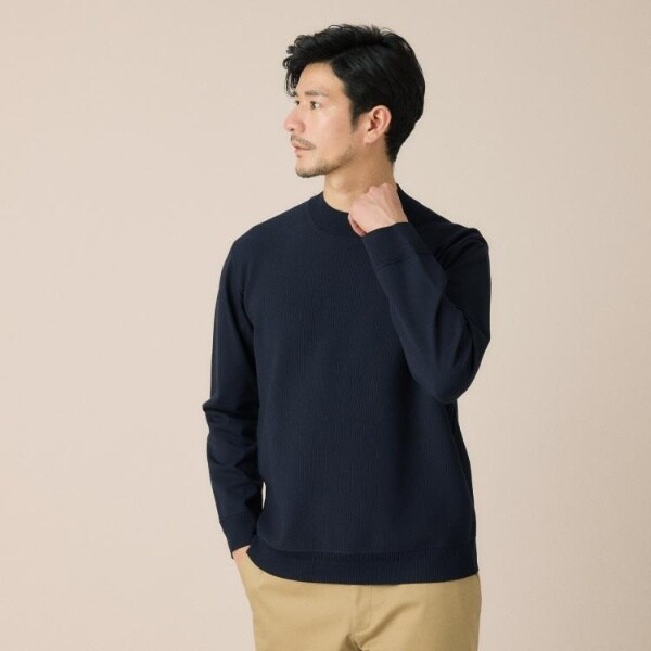 もっちりとした弾力と、しっとり肌に寄り添うタッチがやみつきになるモックネックプルオーバー。