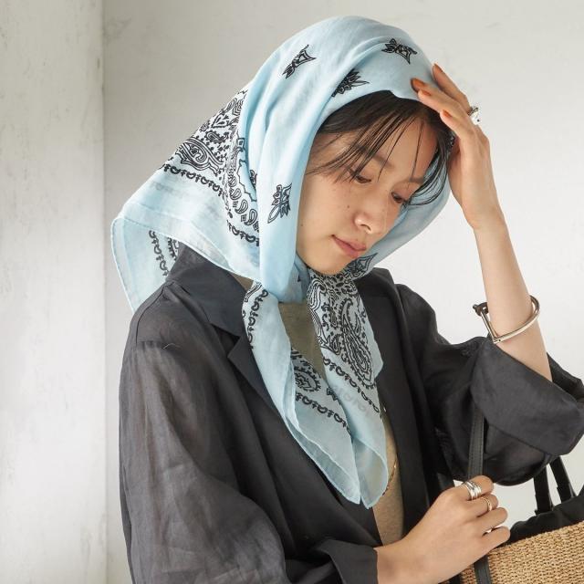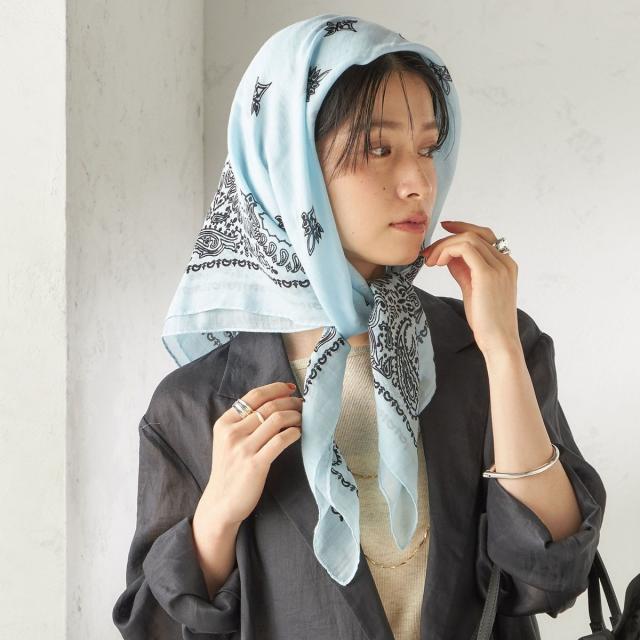 やわらかい透け感のあるコットンを使用したバンダナ柄のスカーフです。