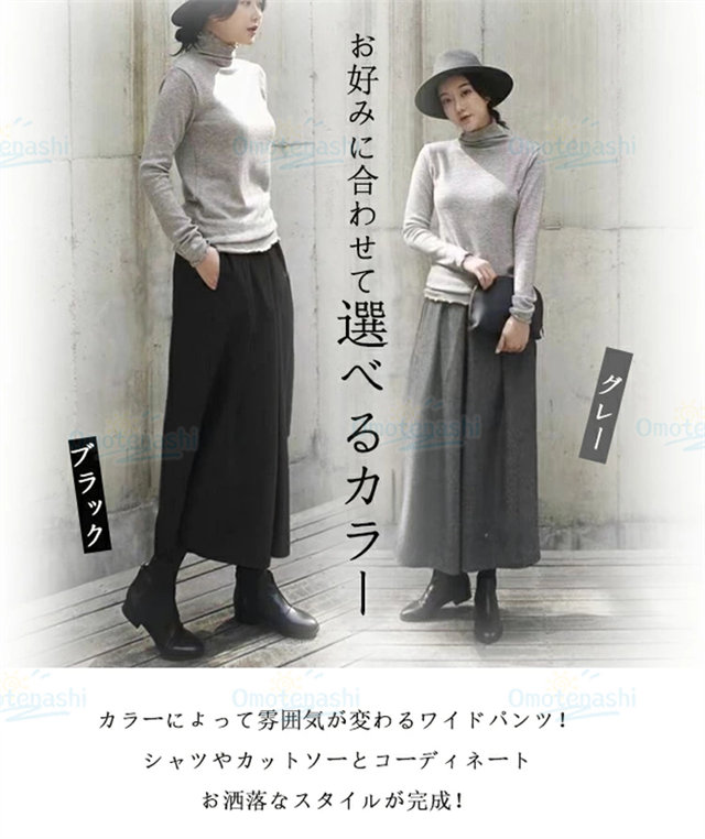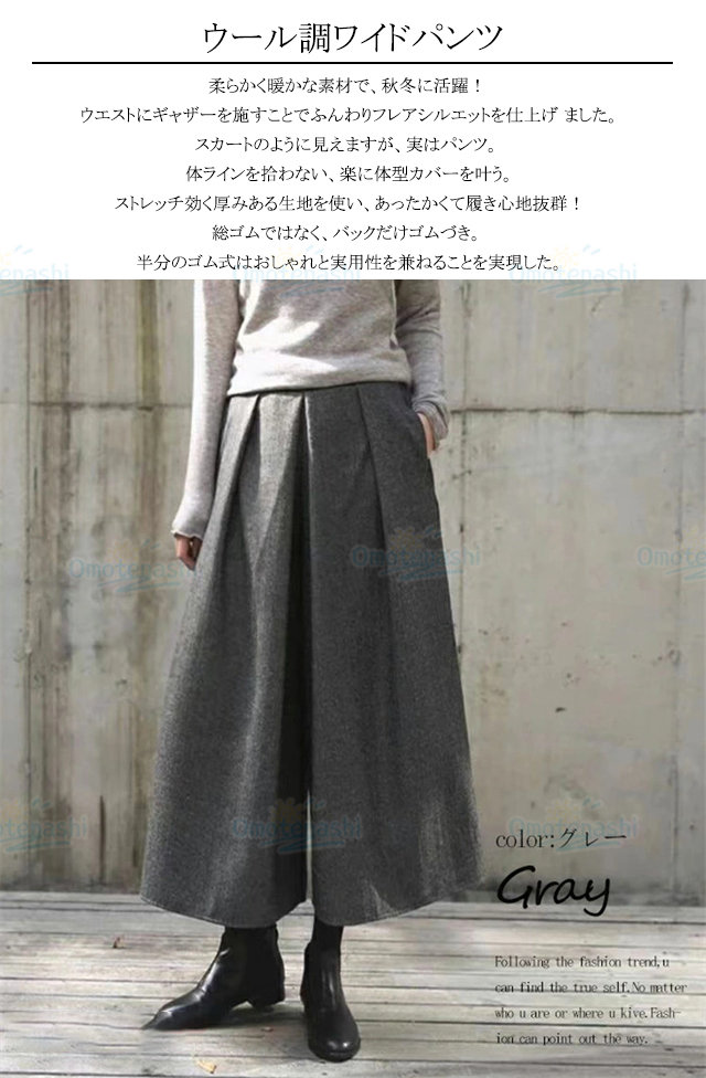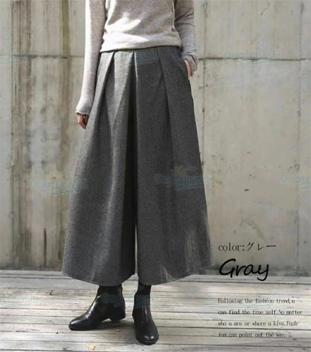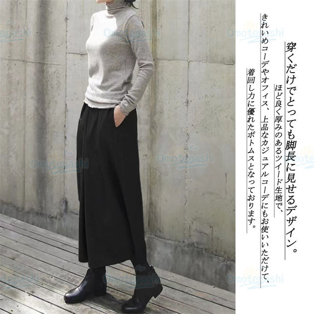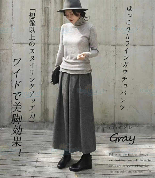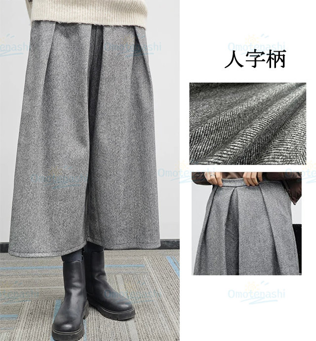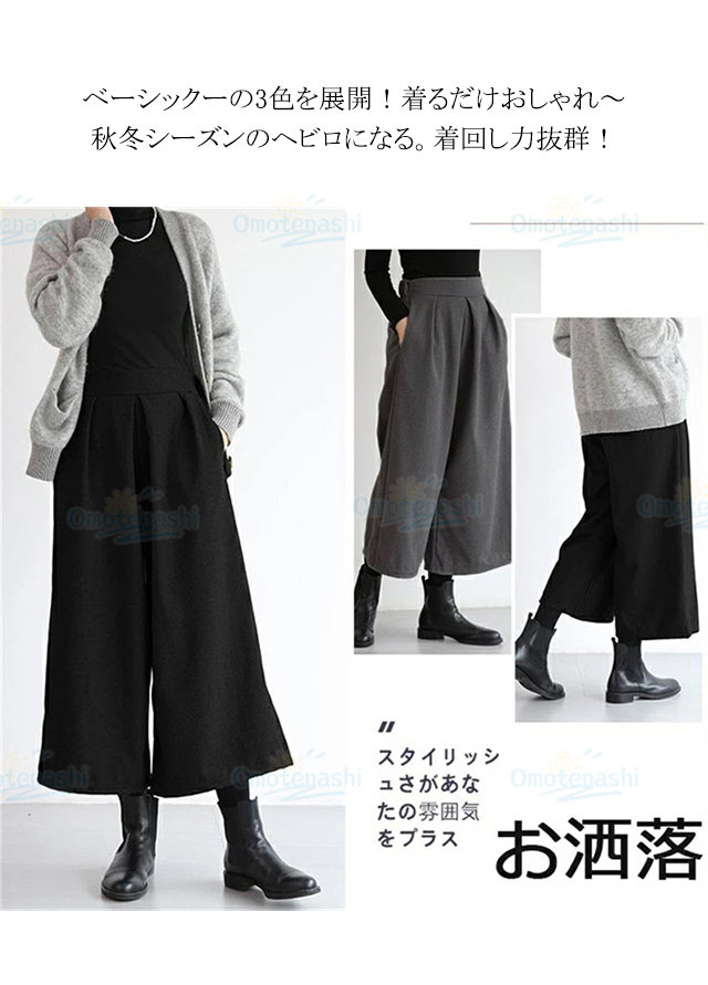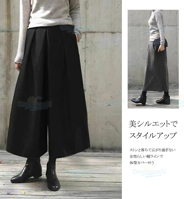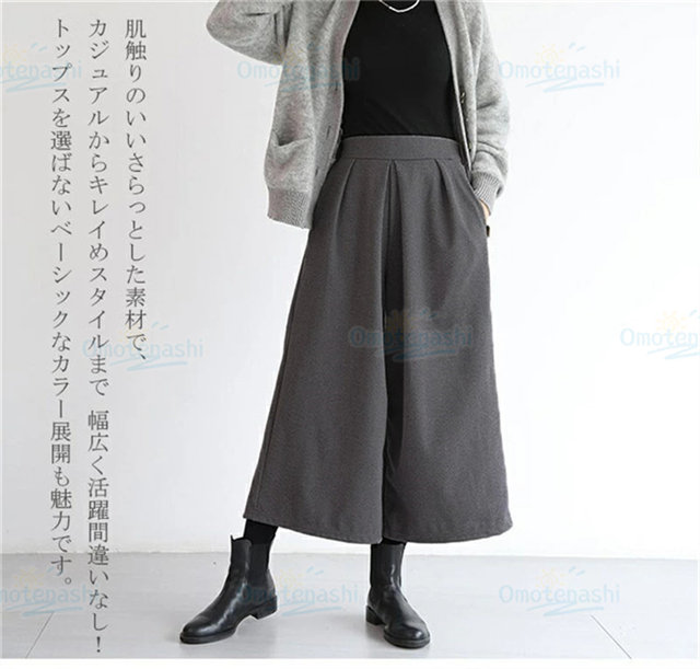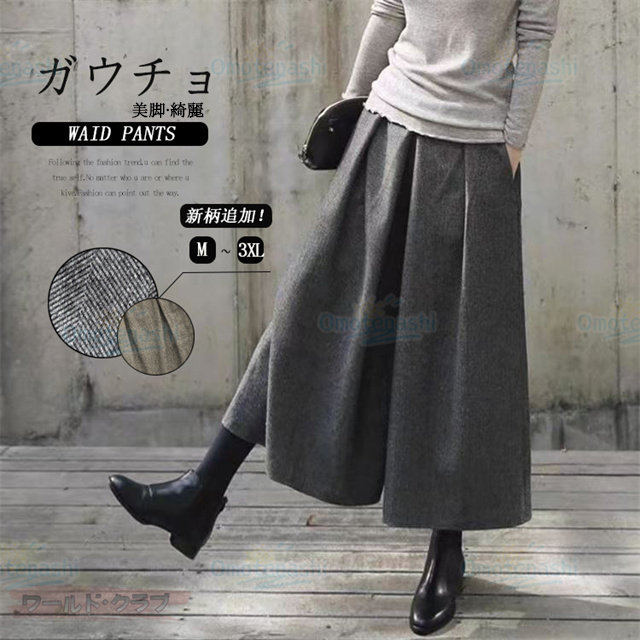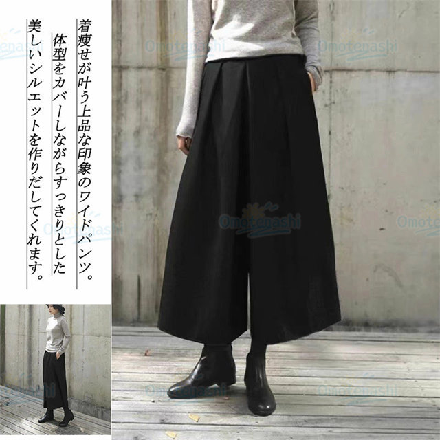 ガウチョパンツ ワイドパンツ ウール調 レディース きれいめ キュロット 防寒 保温 秋 冬 秋冬 ボトムス クロップドパンツ スカーチョ タック ロングパンツ ガウチョ ゆったり パンツ 通勤 大人 カジュアル 20代 30代 40代 50代