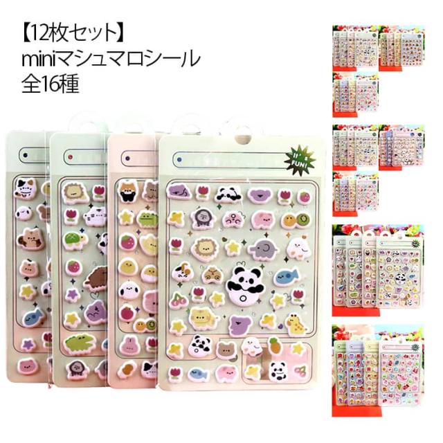 プチ マシュマロシール 12枚セット シール交換 手帳 3Dステッカー 全16種 シマエナガ もちもち 立体 シール ファンシー 女の子 3D 動物 泡ステッカー ぷくぷくシール 玩具 おもちゃ デコシール 推し活 デコレーション プレゼント