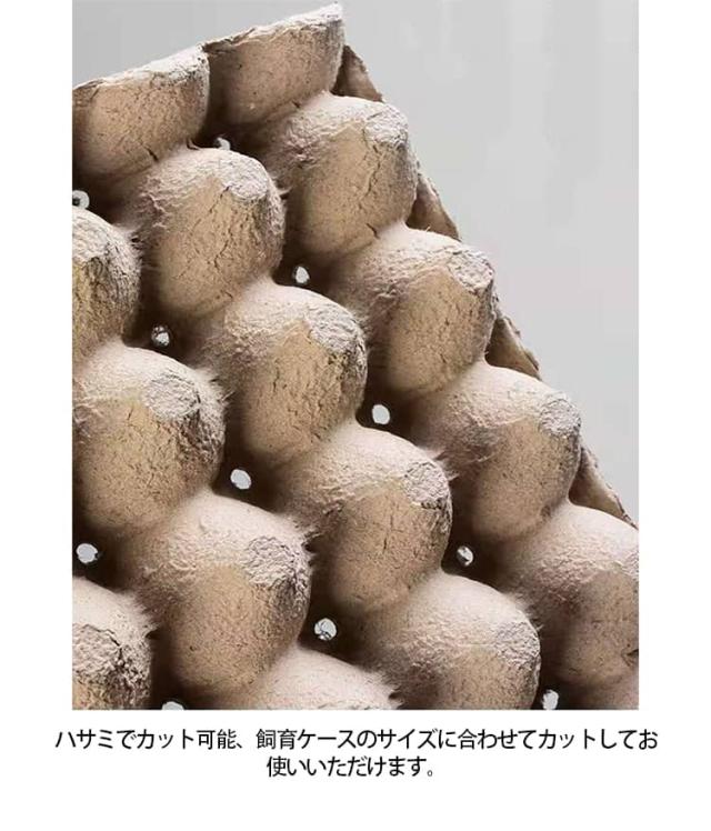 | 卵の保管や昆虫飼育に便利な、紙製卵トレー30室タイプ・25枚セット。 卵を一つずつ安定して収納できる構造で、衝撃を吸収し割れを防ぎます。 通気性に優れた紙素材を使用しており、湿気がこもりにくく、衛生的に使用可能。 卵ケースとしてはもちろん、コオロギ・デュビア・ミルワームなどの昆虫飼育や繁殖用トレーとしても幅広く活躍します。 ハサミでカット可能、飼育ケースのサイズに合わせてカットしてお使いいただけます。 軽量で扱いやすく、積み重ねて省スペース収納が可能、スペースを節約します。 | |