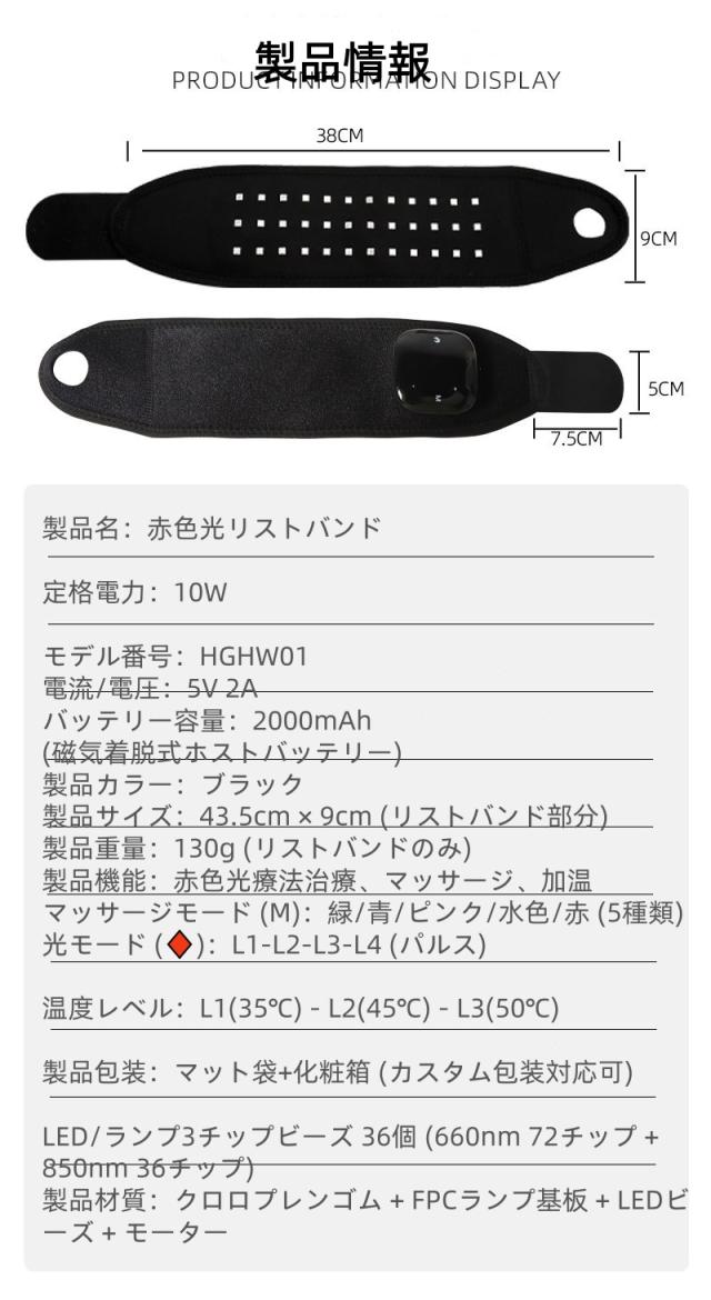 リストバンド 赤色光 コードレス 温熱 マッサージ 手首 痛み マウスハンド ママズハンド サポート 磁気 バッテリー Type-C 充電 スポーツ ケア 660nm 850nm 36LED 軽量 父の日 プレゼント HGHW01