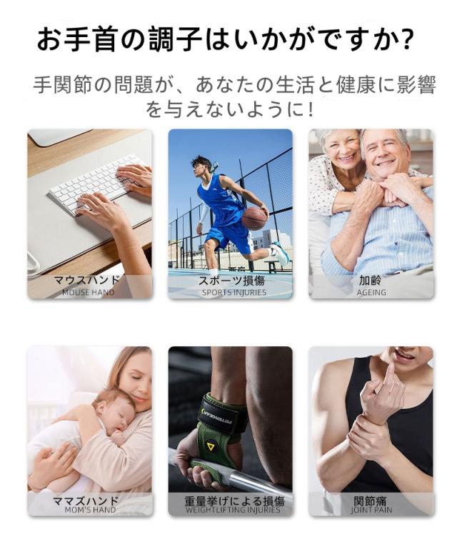 パソコン作業による「マウスハンド」、育児や家事での「ママズハンド」、スポーツによる手首の負担を、最新の光療法学とコードレス設計でワンストップケア。温め、揉み、光で照らす。手首に特化した、次世代のセルフケアデバイスです。
