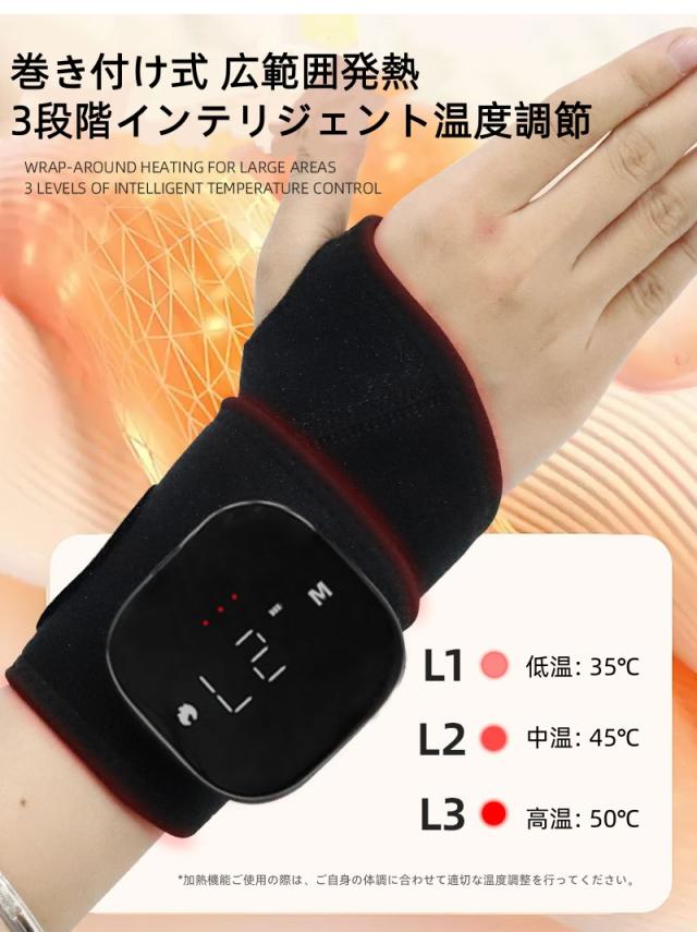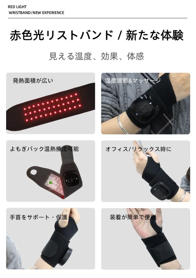 【赤色光&温熱&振動】コードレスリストバンド 36LED 3段階温度 5段階按摩 磁着電池 マウスハンド 手首痛 ケア HGHW01 パソコン手首の救世主!親指固定 Type-C充電 スポーツにも 簡単操作 手首サポート ブラック 母の日、父の日、敬老の日