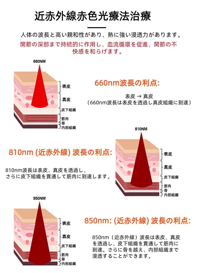 36個の高密度LED(660nm×72チップ + 850nm×36チップ)が、表皮から筋肉・関節の深部まで光を浸透させ、細胞活性と血流改善をサポート。