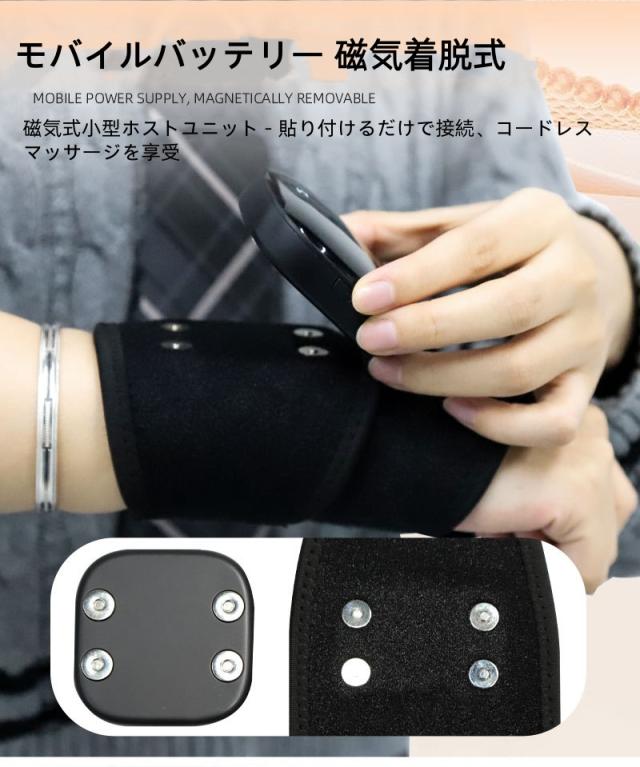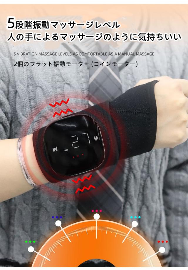 5段階振動マッサージ:2個の振動モーターが、5種類の異なるパターンで手首周辺の筋肉を心地よくほぐします。
