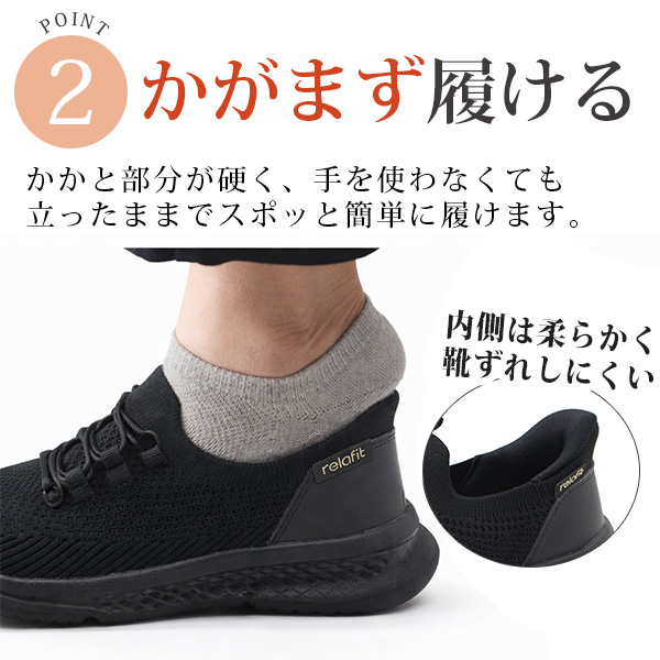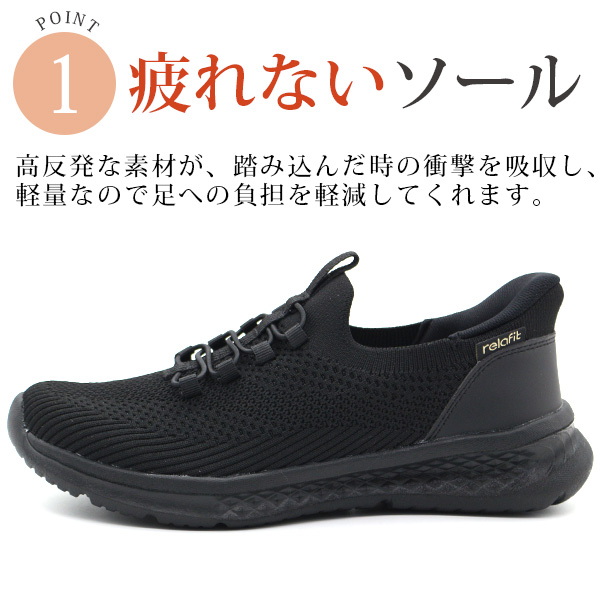 スリッポン レディース 靴 スニーカー 黒 ブラック ハンズフリー 厚底 軽量 軽い 疲れにくい 妊婦 子育て 履きやすい サッと履ける 歩きやすい クッション ランニング ウォーキング スポーツ 手を使わずに履ける 疲れない 歩きやすい リラフィット relafit RFM572