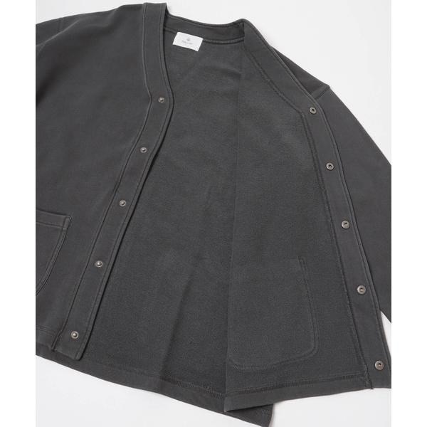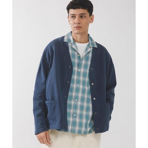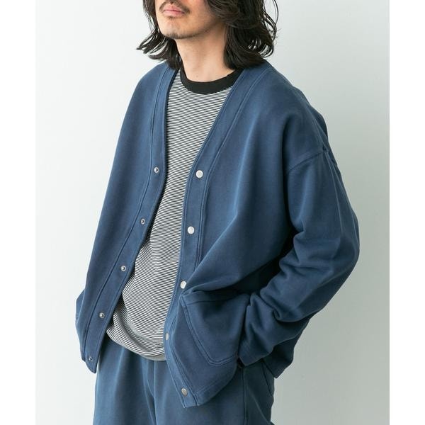 スウェット地のソフトな風合いで羽織りやすいVネックカーディガンです。スナップボタンとポケット付きのシンプルなデザインで、シャツやTシャツの上にさらっと羽織るだけでこなれた印象に仕上がります。