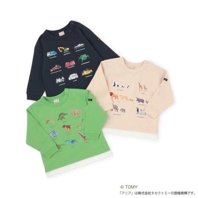 トミカやアニアのグラフィックデザインが遊び心のある長袖Tシャツです。