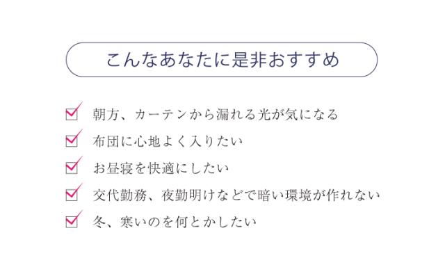 光や音が気になる方、睡眠の質を高めたい方におすすめです。