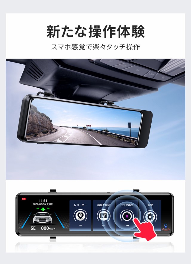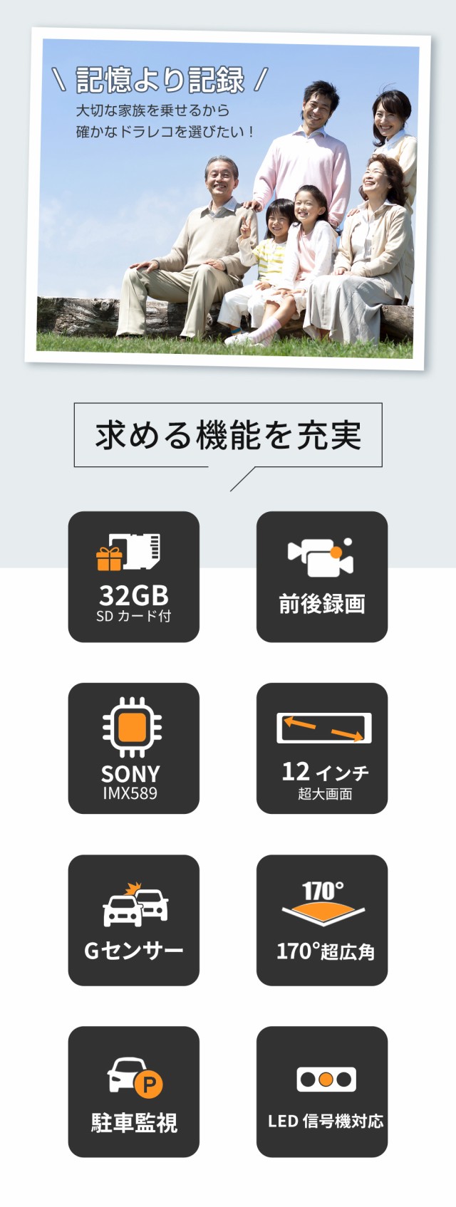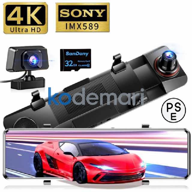 ドライブレコーダー ミラー型 4K 1440P 高画質 SONYセンサー 12インチ 前後カメラ 同時録画 24時間駐車監視 地デジ干渉対策 32GB高速SDカード付き HDR/WDR