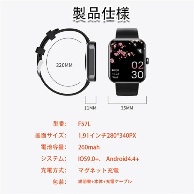 スマートウォッチ 日本製 2025 1.91インチ Phone Android 着信通知 24時間体温測定睡眠 IP67防水 交換ベルト 誕生日 母の日プレゼント