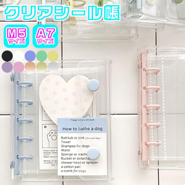 シール帳 A7 M5 シール 手帳 クリア 星柄 キラキラ ラメ ケース バインダー ミニ手帳 レディース リフィル 付き かわいい 穴あきシート シンプル シール収納 推し活グッズ ボンボンシール ぷくぷくシール システム手帳