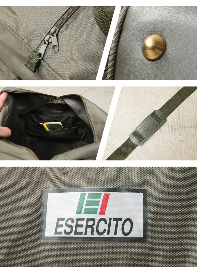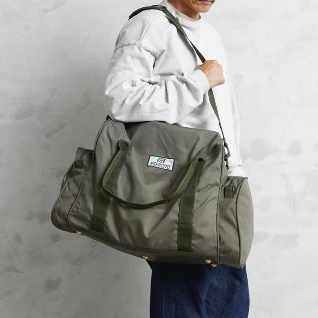 実物 新品 デッドストック イタリア軍 ESERCITO ITALIANO ショルダーバッグのご紹介です。丈夫なナイロン素材を使用したイタリア軍放出のショルダーバッグで、大容量のメインコンパーメントに加え、両サイドにはジッパーポケット付きで、1、2泊程度の旅行にはもってこいのアイテムです。フロントに表記された“ESERCITO”とは、軍(ARMY)を意味し“ESERCITO ITALIANO”はイタリア陸軍を意味します。バッグの底部分を保護する金属製の底鋲、持ちやすい広めのハンドルに、取り外し可能なショルダーストラップ付きで、2通りの使用ができるのも便利です。レトロな雰囲気がたまらない、オシャレなアイテムで、つくりも丈夫なので長く愛用していただけます。